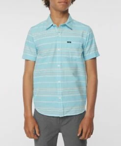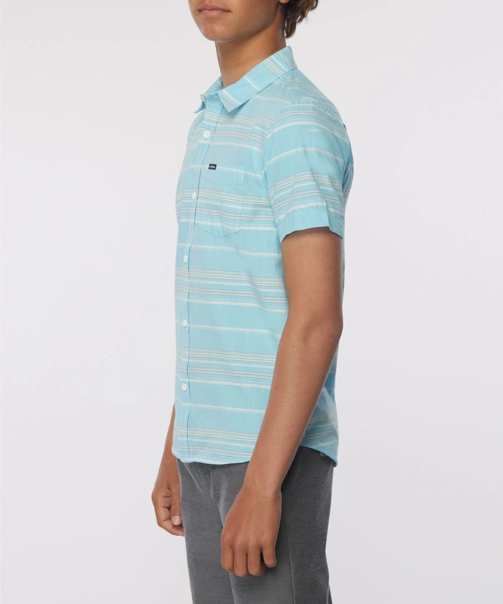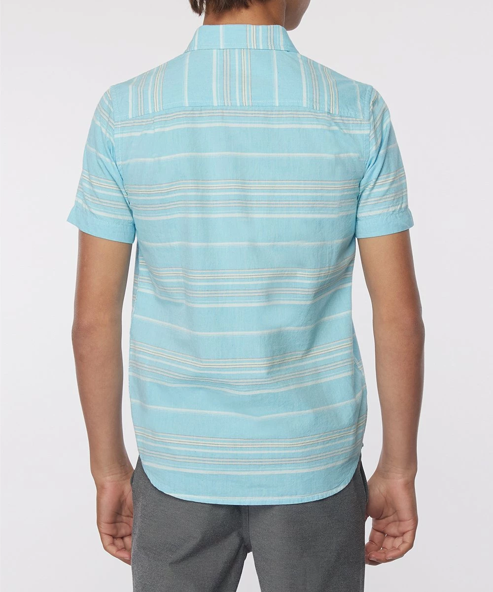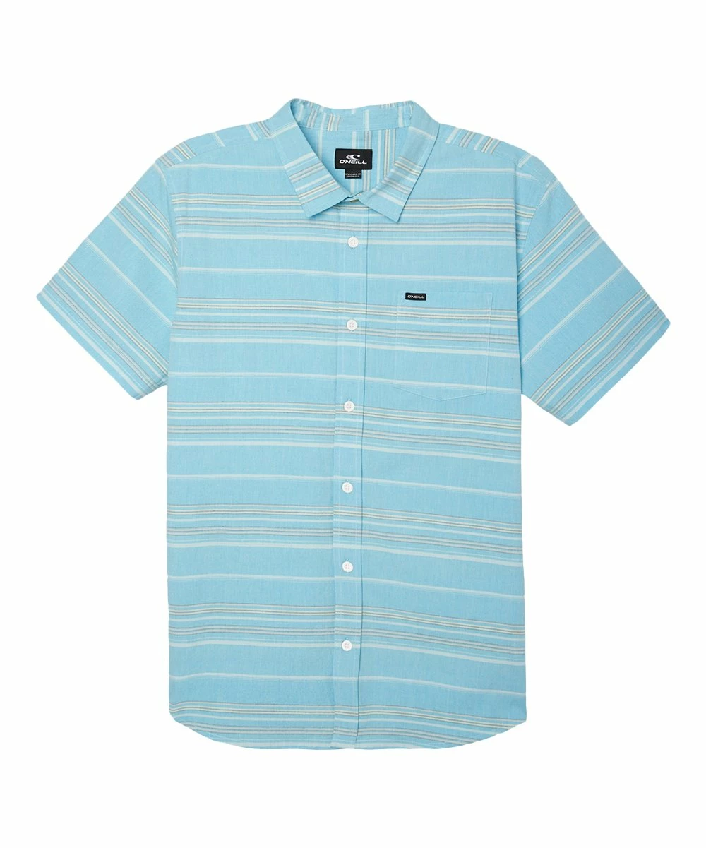 This cotton-blend short-sleeved button-up has a hint of stretch to complement the classic style and the mod print.