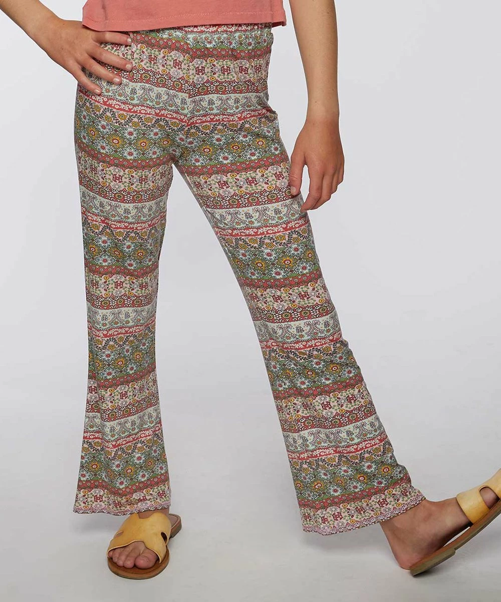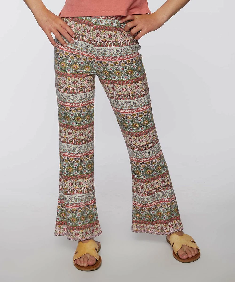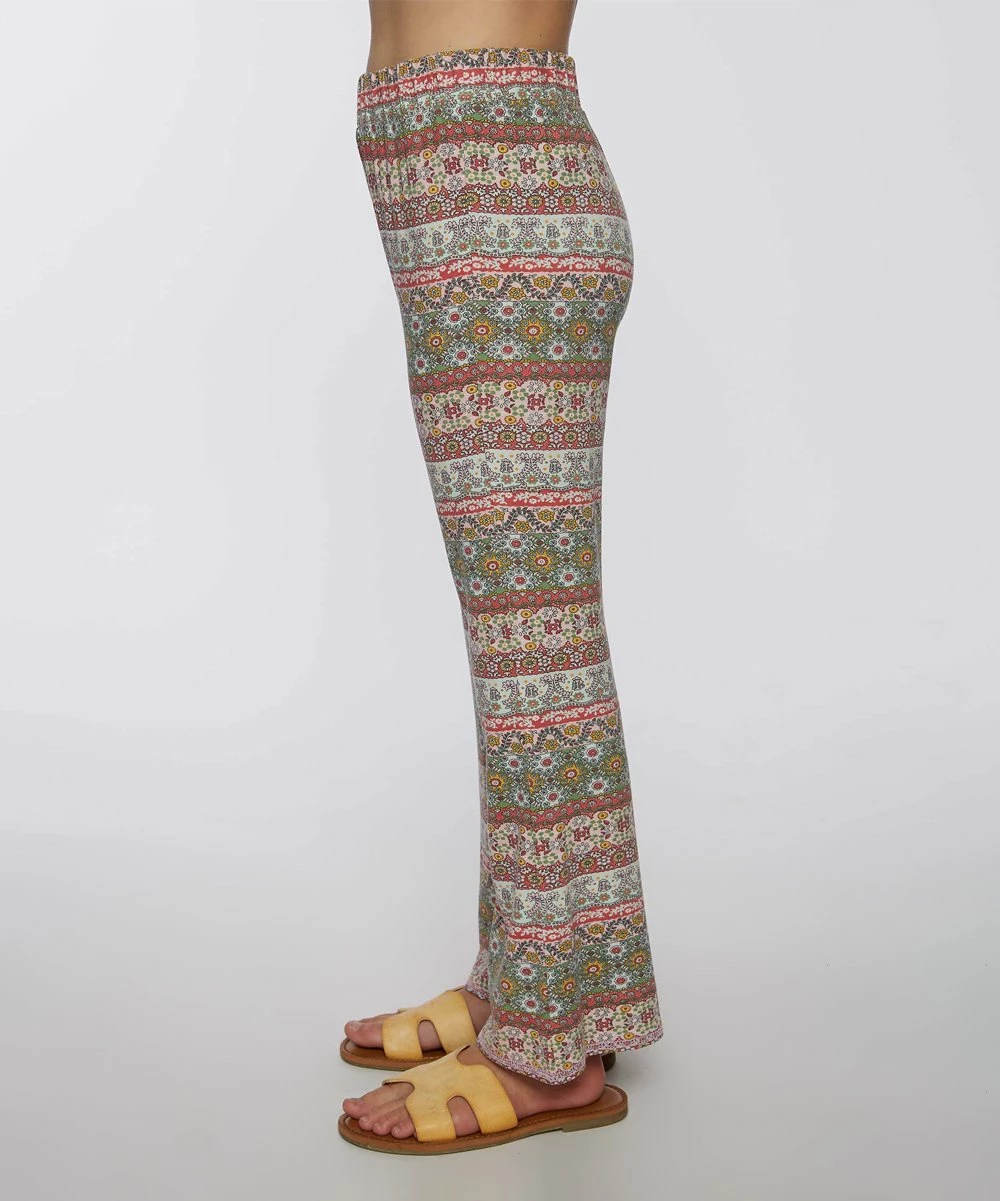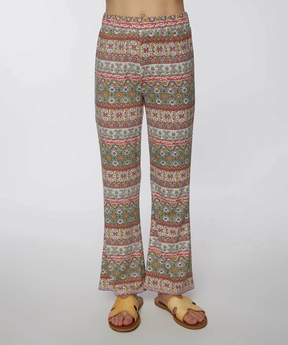 These flared pants feature an all-over print and an easy pull-on elastic waistband.