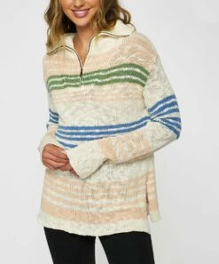Pullover featuring an eye-catching stripe print and comfortable ribbed-knit cuffs.