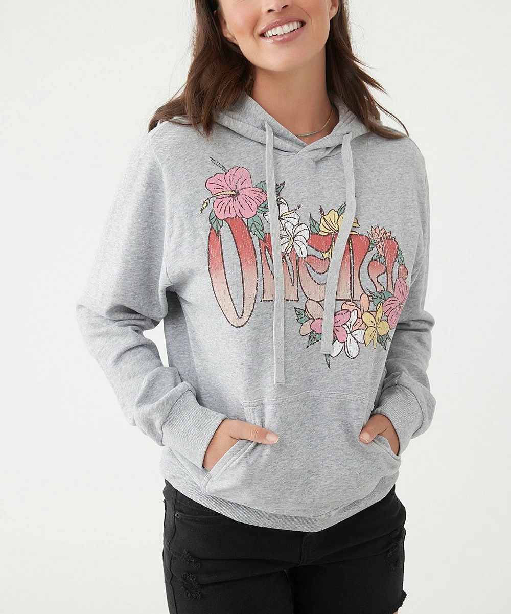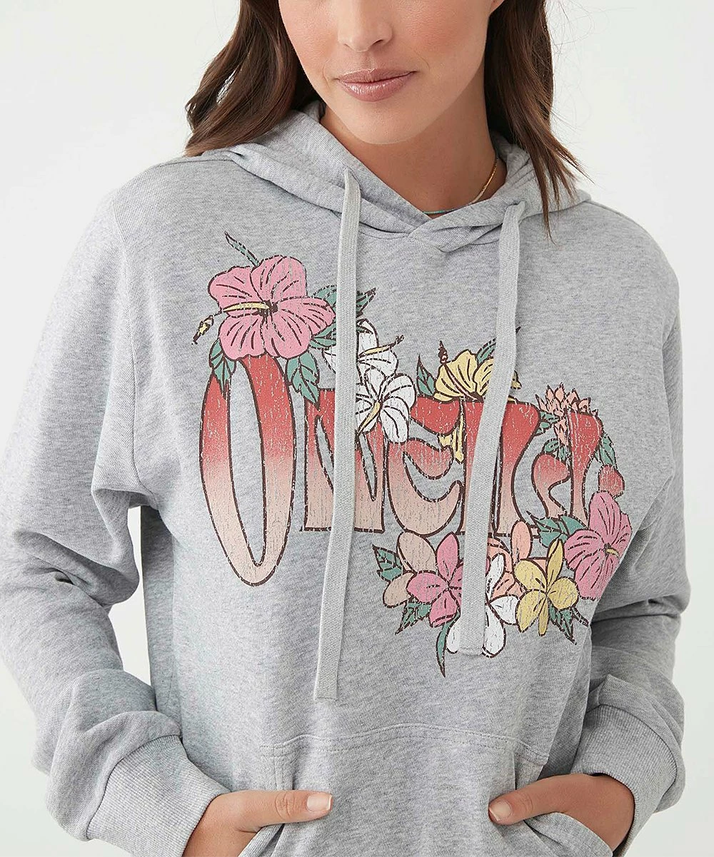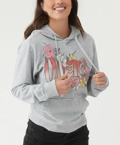 Opt for casual comfort with this drawstring fleece hoodie sporting a floral graphic on the front.