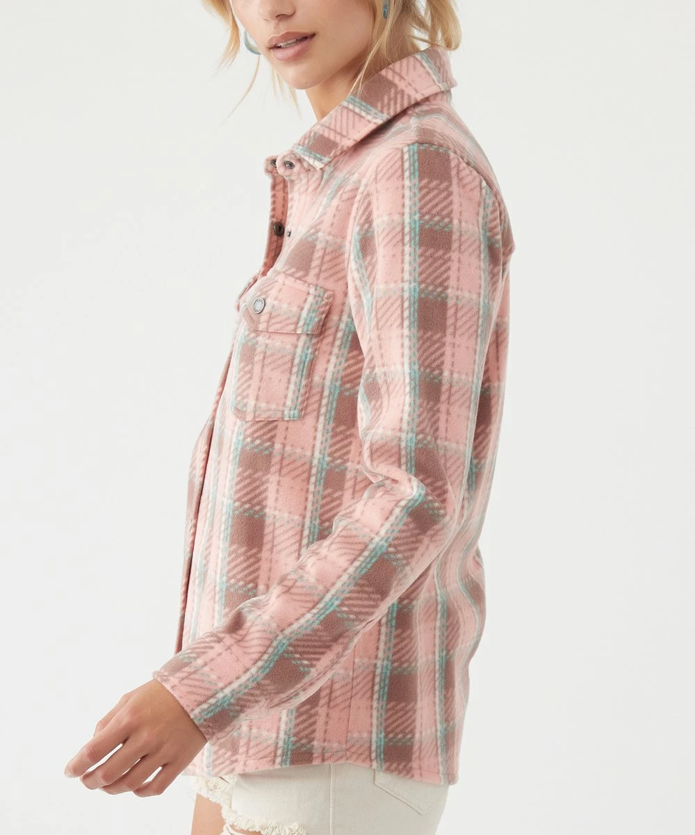 Classic button-up featuring a plaid print and cozy fleece finish.