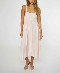 This comfy, flowy shift dress features a classic color and soft material for everyday wear. Adjustable racerback straps and side slits.