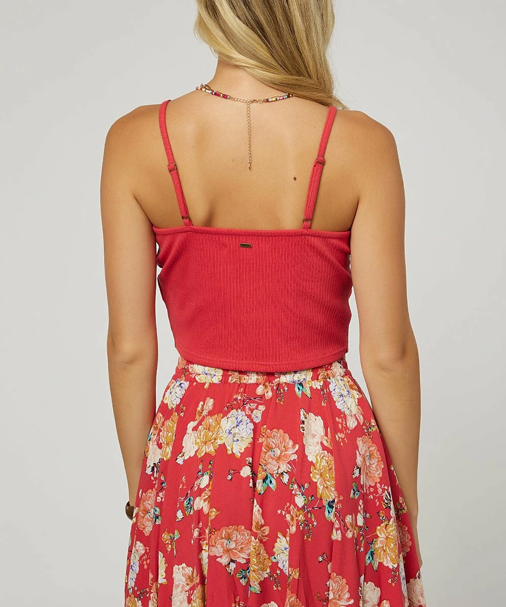 This relaxed tank features a stylish crop design with a tie-front detail and adjustable straps.