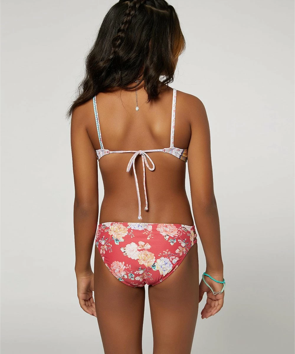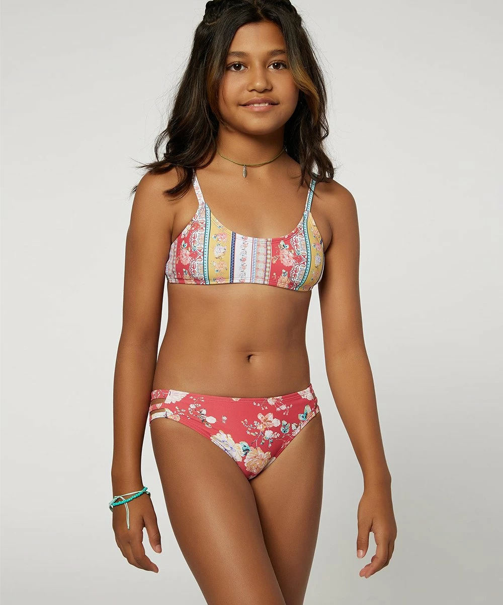 - Includes one red floral striped bikini top and one pair of coordinating floral bikini bottoms (two pieces total)