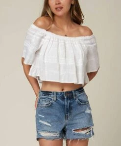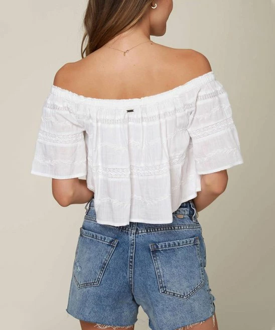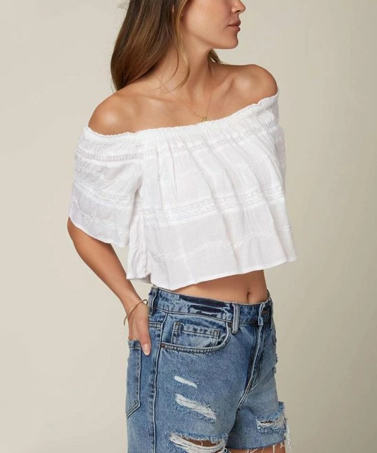 Show off your fave necklaces or collarbones whenever you don this trend-driven ruffle off-shoulder top that pairs well with your fave pair of jeans or leggings.