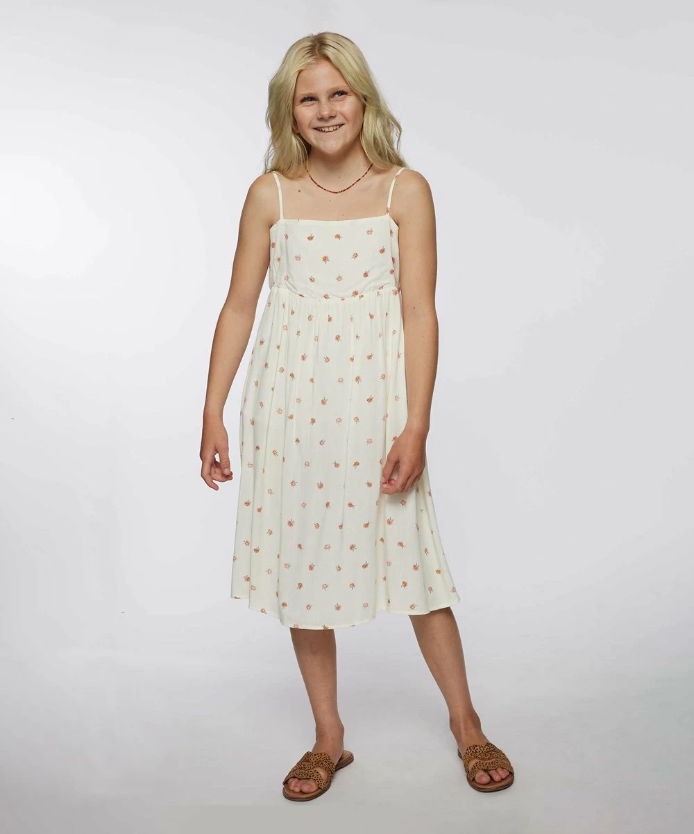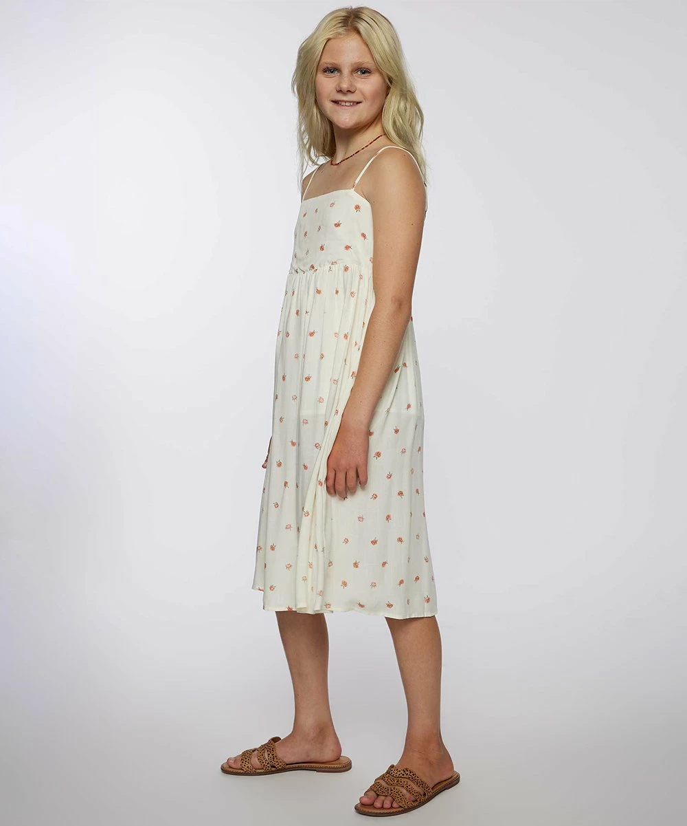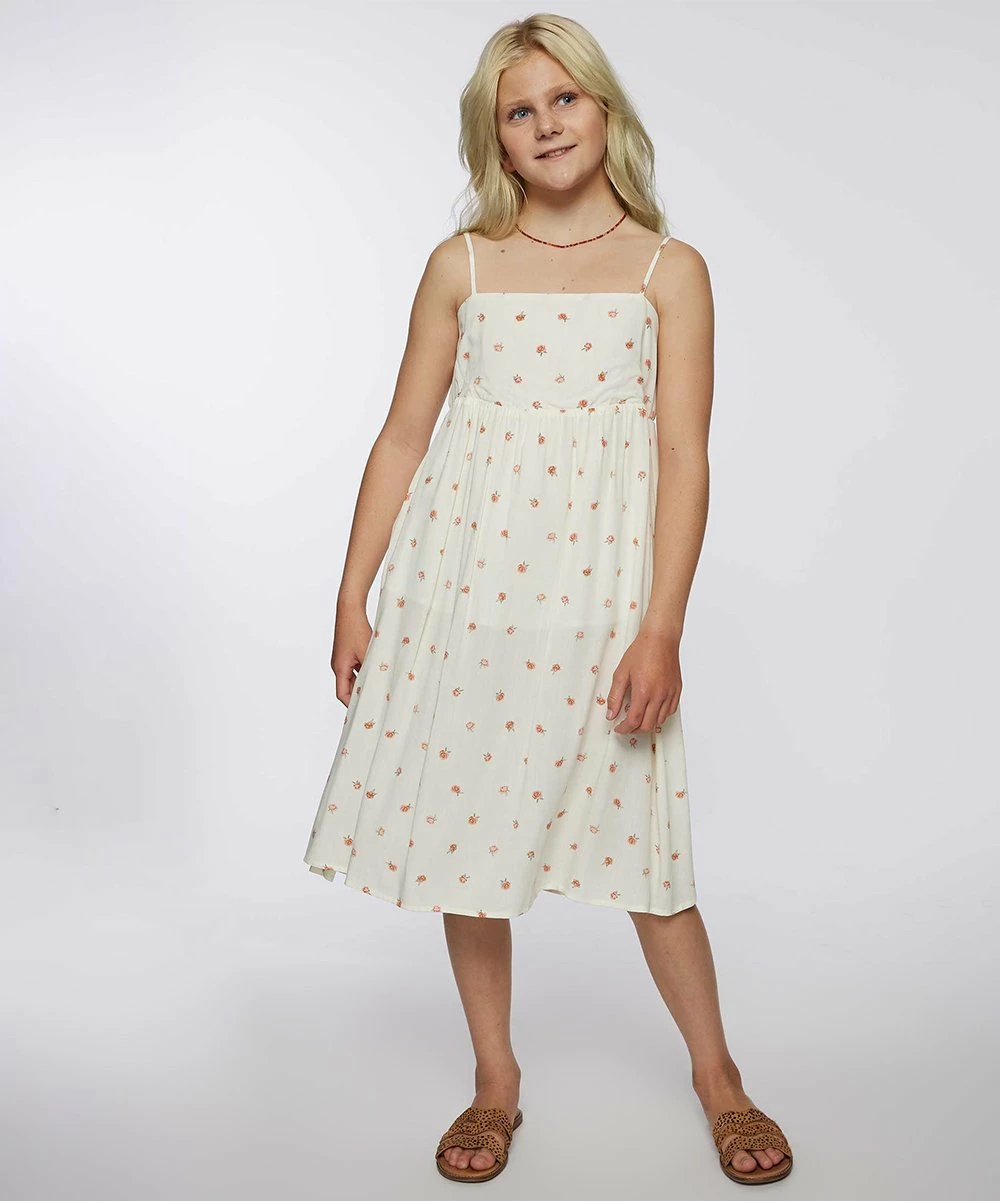 With spaghetti straps and a loose fit, this lightweight dress will allow your young one to move and play in style.