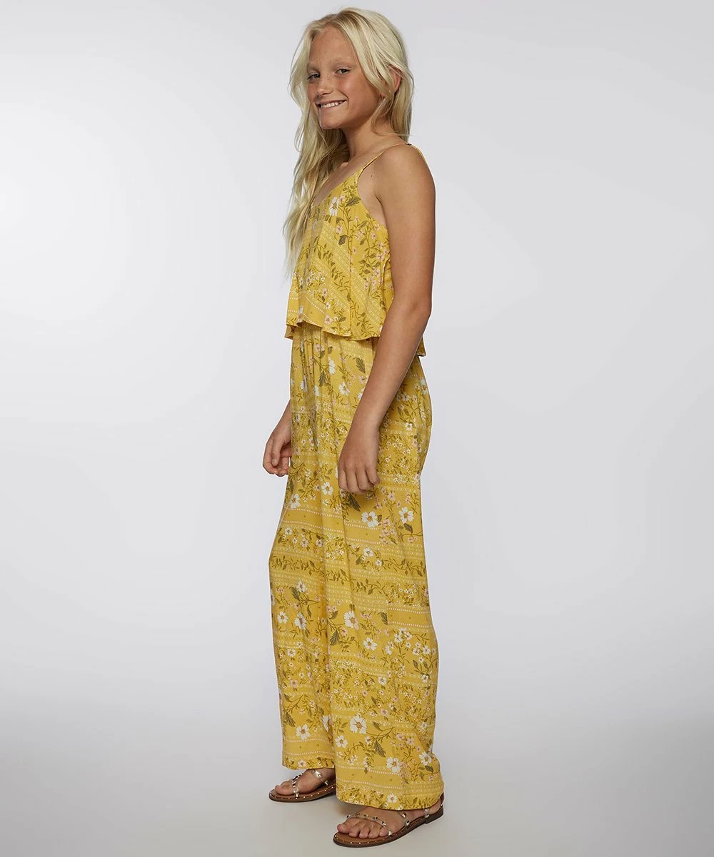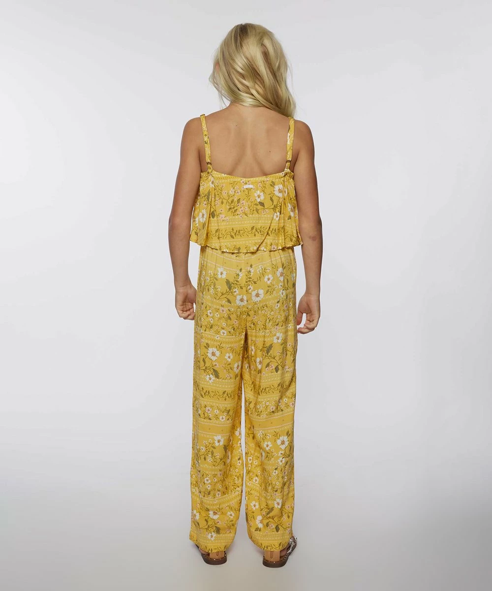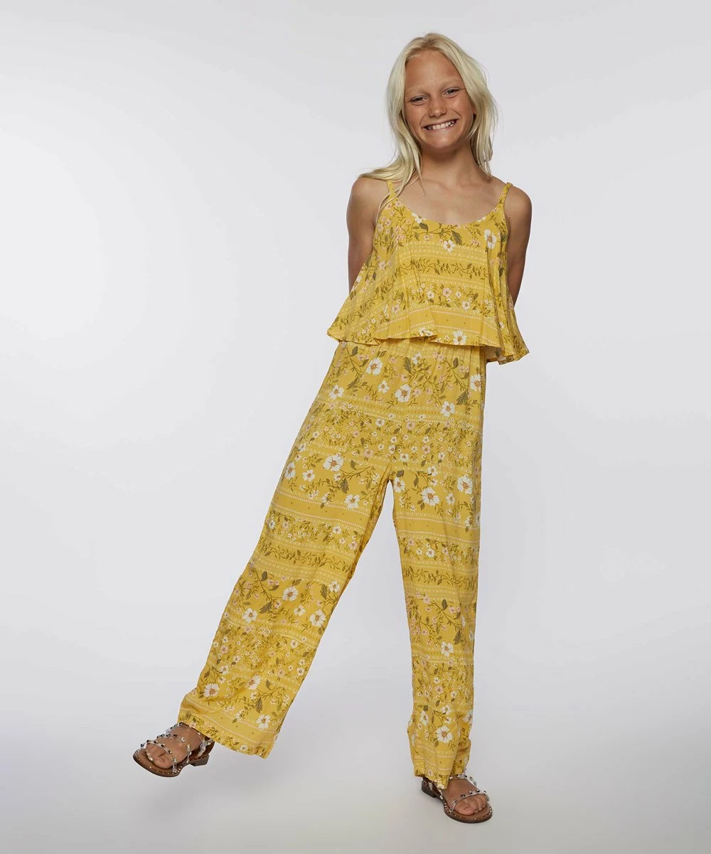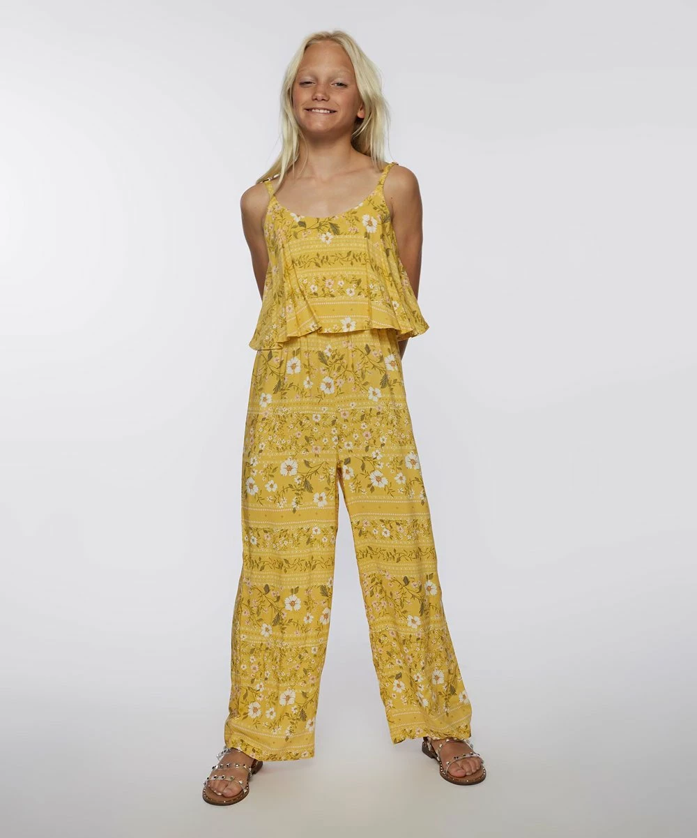 This one-piece woven jumpsuit features metal strap adjusters, spaghetti straps, and a loose fit for easy all-day comfort.