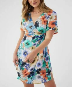 Discount ๐ O’Neill Teal Green & White Floral Empire-Waist Felix A-Line ๐ Dress – Juniors โจ